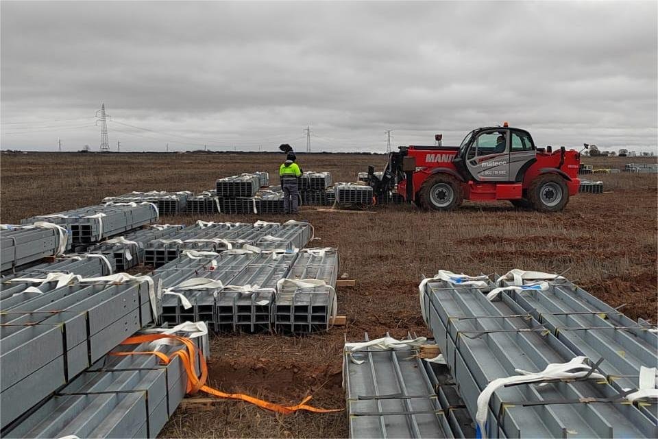 Parque Solar Fotovoltaico Grijotas, situada en Becerril de Campos, Palencia. Potencia instalada de 178 MWp. Ejecución de trabajos de obra civil, proceso de hincado, montaje de estructura y módulos fotovoltaicos y control de calidad